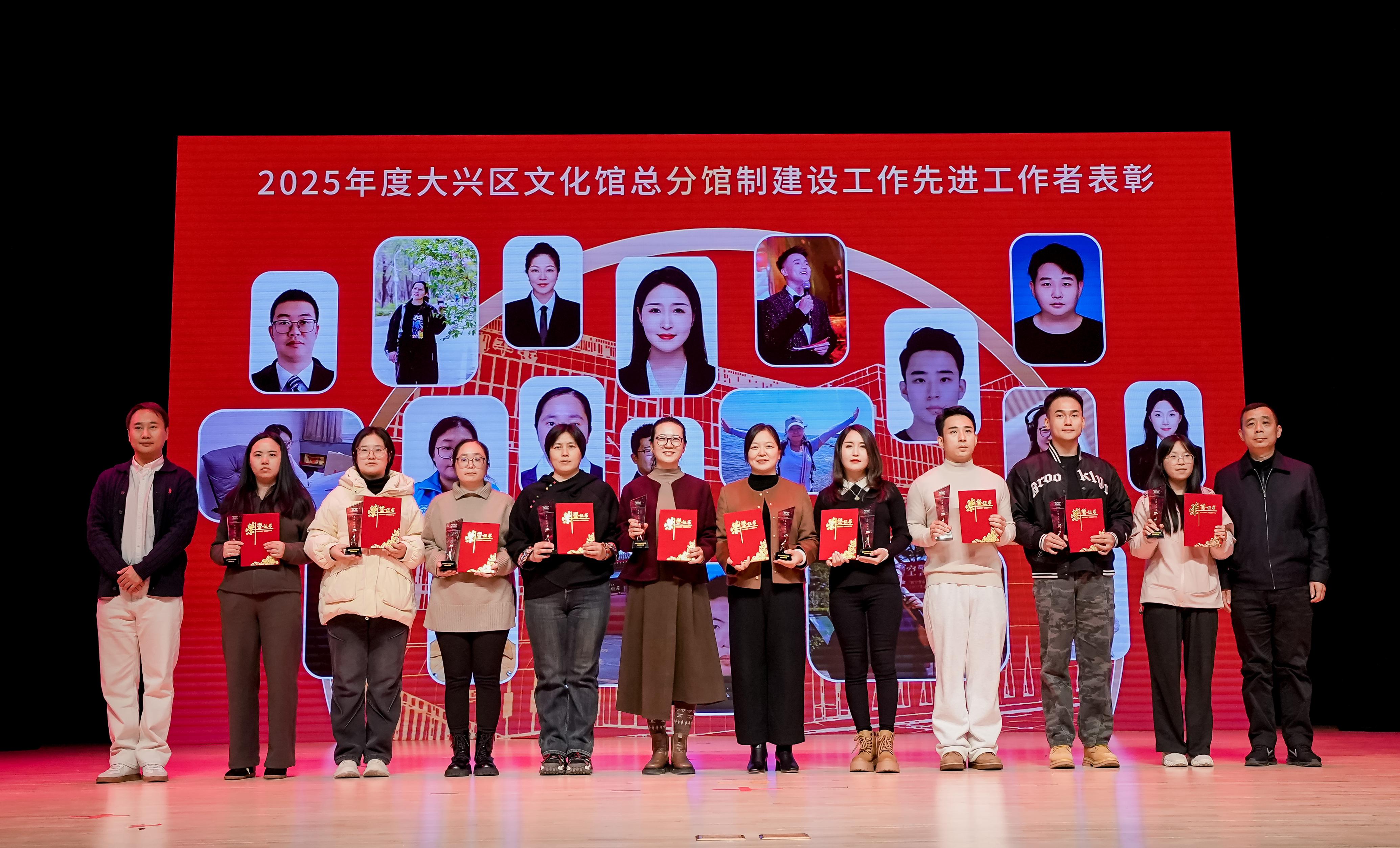 大会表彰环节聚焦“实干者”与“奉献者”,现场颁发“先进工作者”与“优秀文化志愿者”两大奖项。其中,榆垡镇分馆曹月、西红门镇分馆邵玉等20名基层文化工作者获“先进工作者”称号,他们深耕一线,组织文艺演出、公益活动、非遗体验等群众喜闻乐见的活动,成为公共文化服务的“中坚力量”;长子营镇分馆张瑜、清源街道分馆王宇翾等20名优秀文化志愿者以及悦舞轻歌文化志愿者服务队、兴琳艺术团等6支团队的优秀志愿者,他们在活动保障、培训辅助、服务延伸的团队无私付出,为文化服务注入温暖动能。